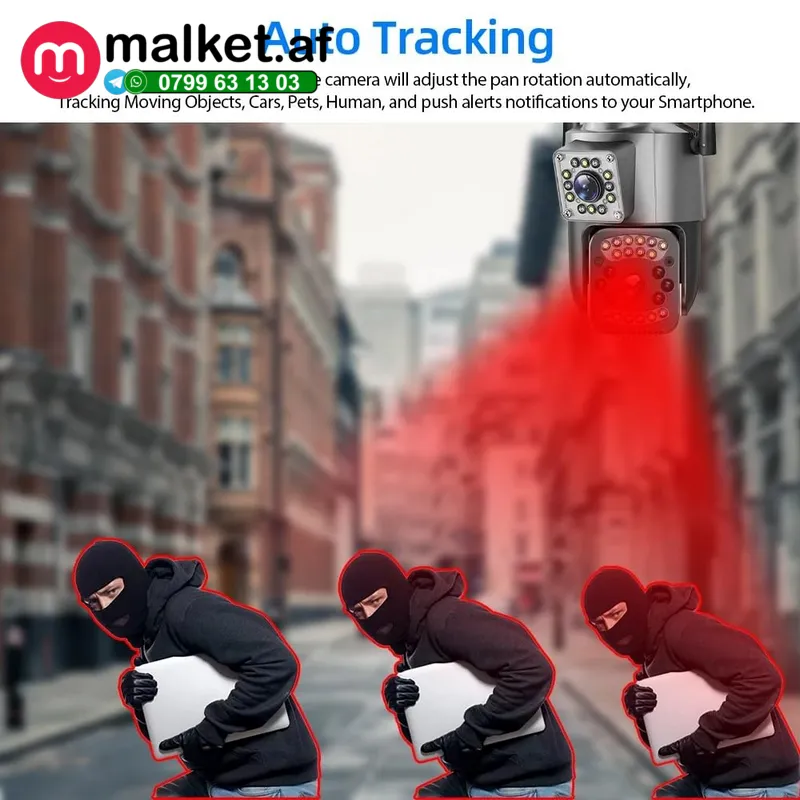 دوربین امنیتی دو لینزه چرخشی ضد آب یک انتخاب حرفهای برای کسانی است که میخواهند خانه، دوکان، دفتر یا گدام خود را در افغانستان بهصورت هوشمند کنترل کنند. این کمره با تصویر HD، صدای دوطرفه، دید در شب رنگی و سیاهوسفید و قابلیت اتصال به موبایل اندروید و آیفون، امکان مشاهده زنده محیط را از نزدیک یا راه دور برای شما فراهم میسازد.